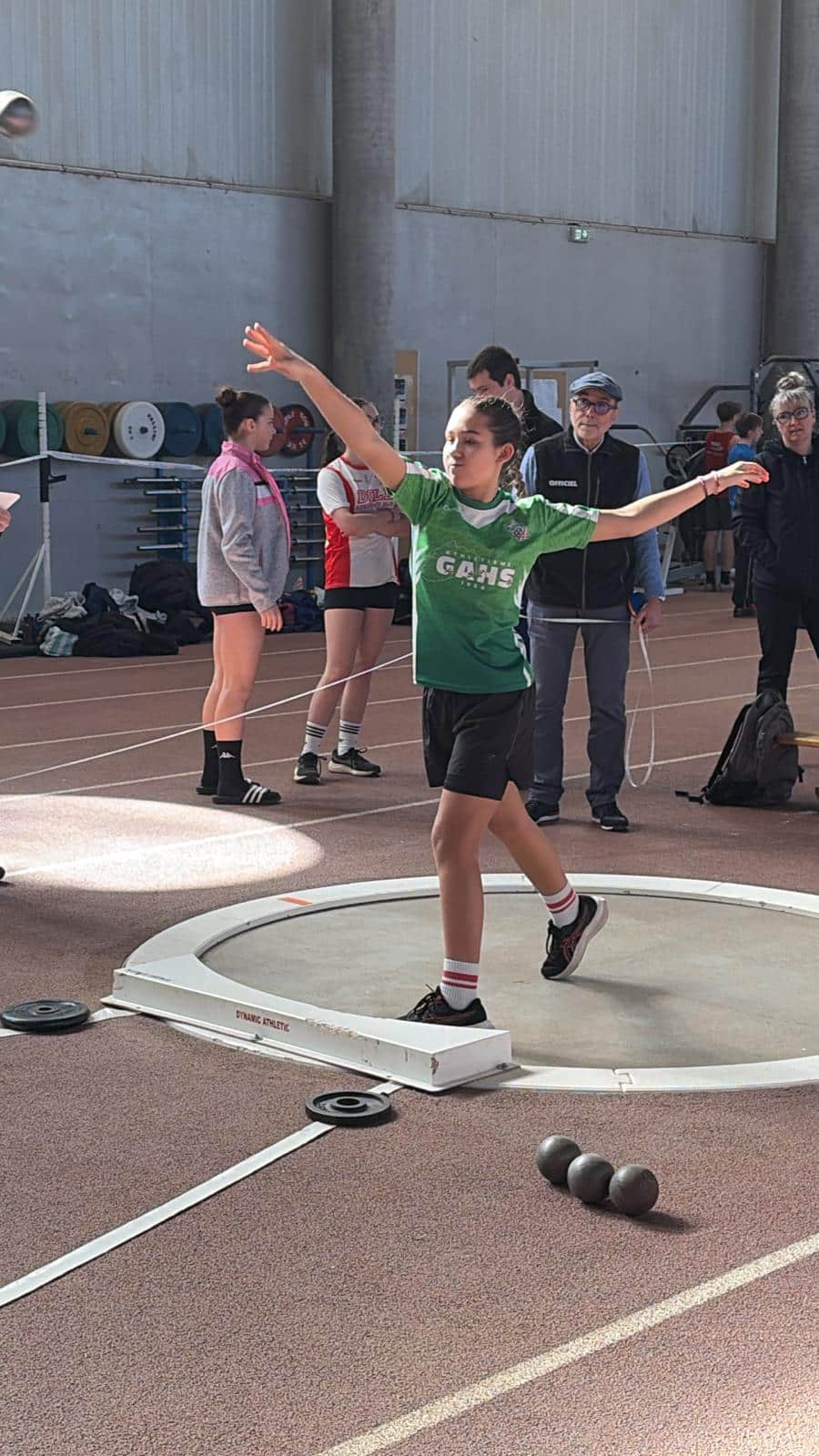 Elle enchaîne ensuite au lancer du poids avec un jet à 8m76, lui permettant de monter une seconde fois sur le podium avec une 3ème place.
