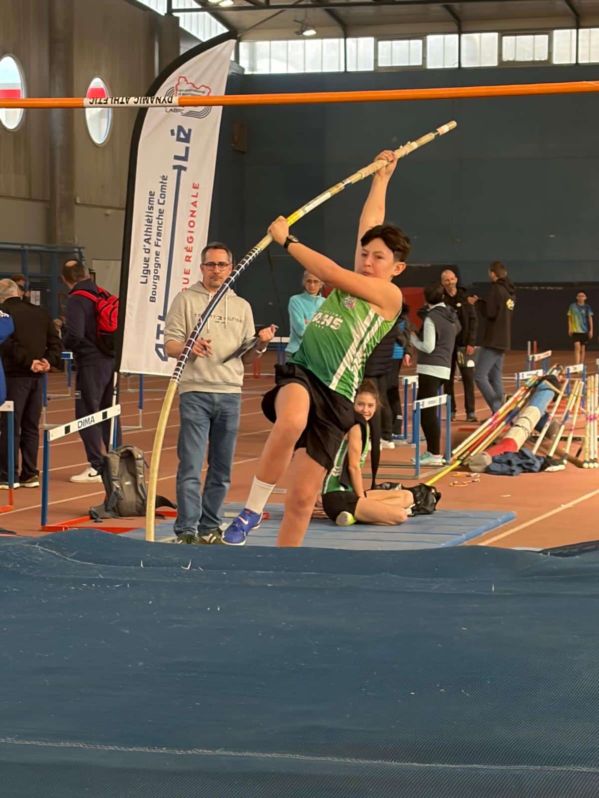 Chez les garçons, Paul Garret s’illustre également au saut à la perche, où il franchit 1m87, synonyme de 3ème place.